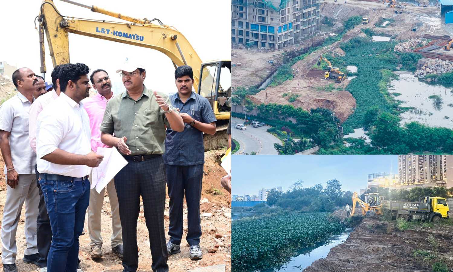 During the inspection, HYDRAA staff also noted concrete pillars installed inside the canal, believed to support an illegal slab. These were ordered dismantled. Officials recalled that Vasavi Construction had been earlier warned to adhere to stormwater regulations during the Vasavi Sarovar project in Kaithalapur.