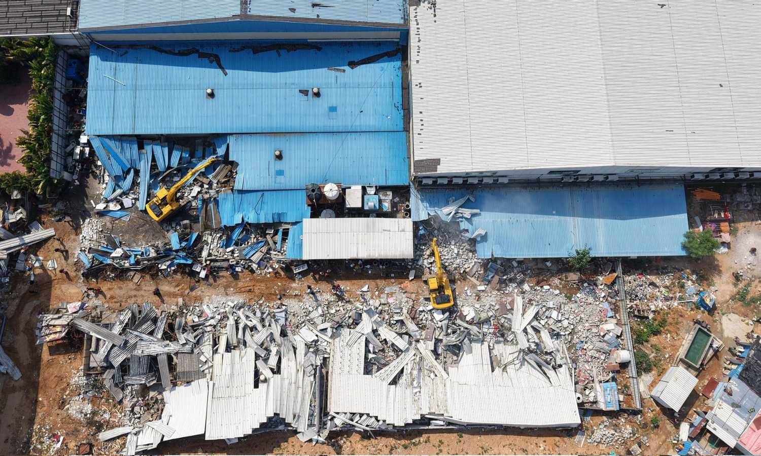The structures brought down included tin fencing erected across encroached layout areas, three G+2 iron sheds, a mini hall, kitchen areas, and restrooms. Officials confirmed that further illegal constructions on the site would also be removed.