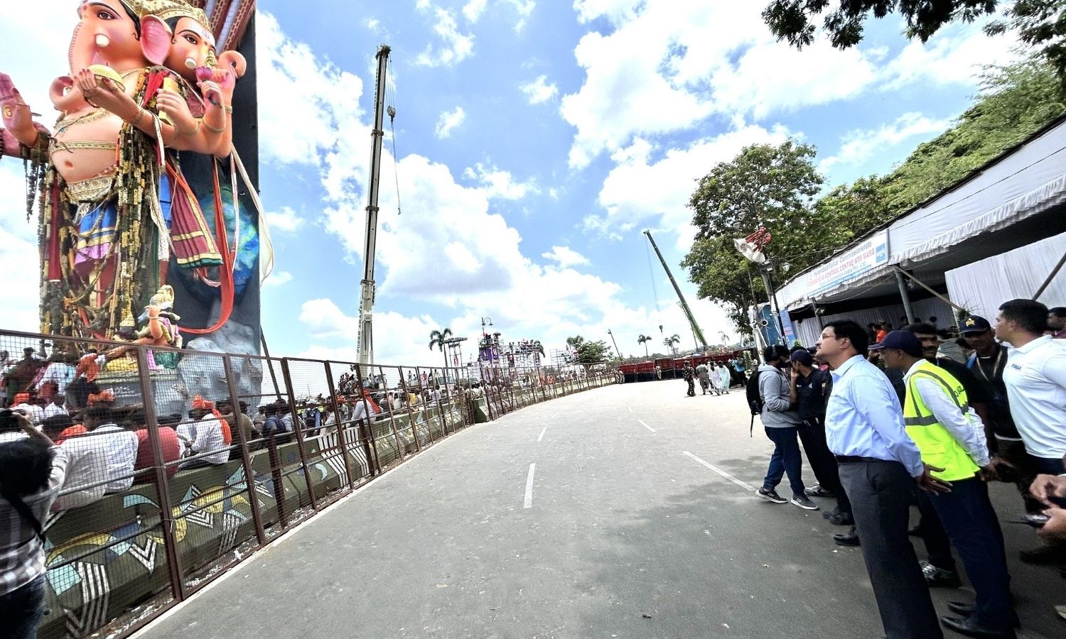 HYDRAAA Commissioner A.V. Ranganath personally supervised the arrangements from the control room set up at Hussain Sagar and inspected the immersion of the giant Khairatabad idol.