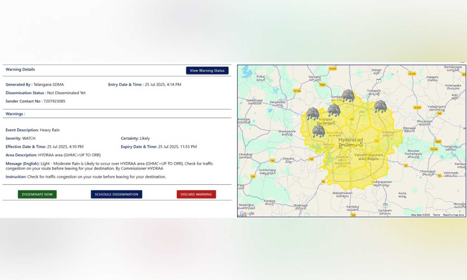 Hyderabad: The Hyderabad Disaster Response and Assets Monitoring and Protection (HYDRAA) on Thursday issued a rain watch alert for the Greater Hyderabad area and surrounding zones up to the Outer Ring Road.