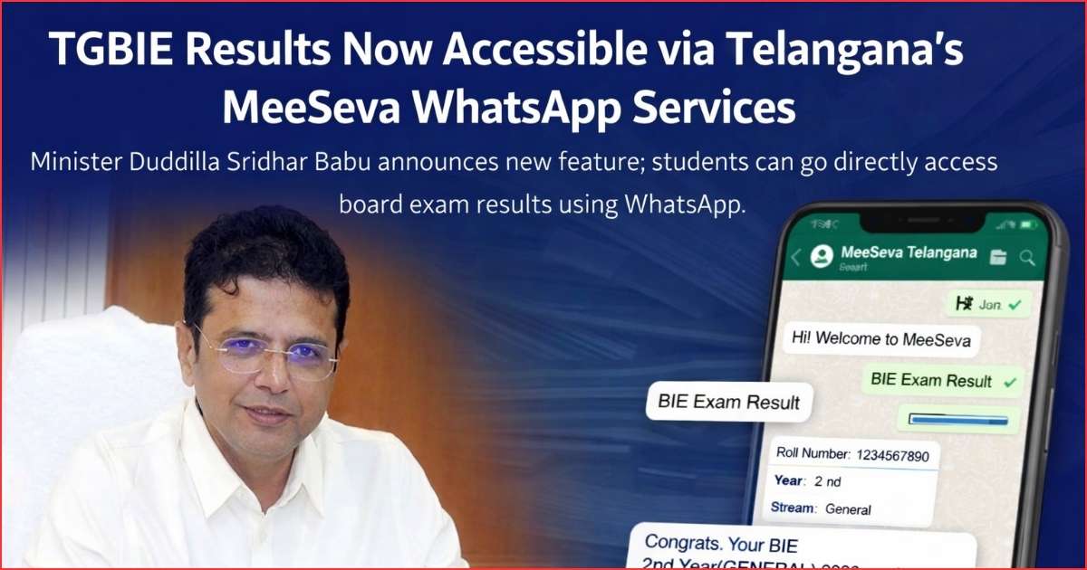 Students of the Telangana Board of Intermediate Education can access their results through WhatsApp by messaging 8096958096. The service removes the need for portal logins and visits to MeeSeva centres.
