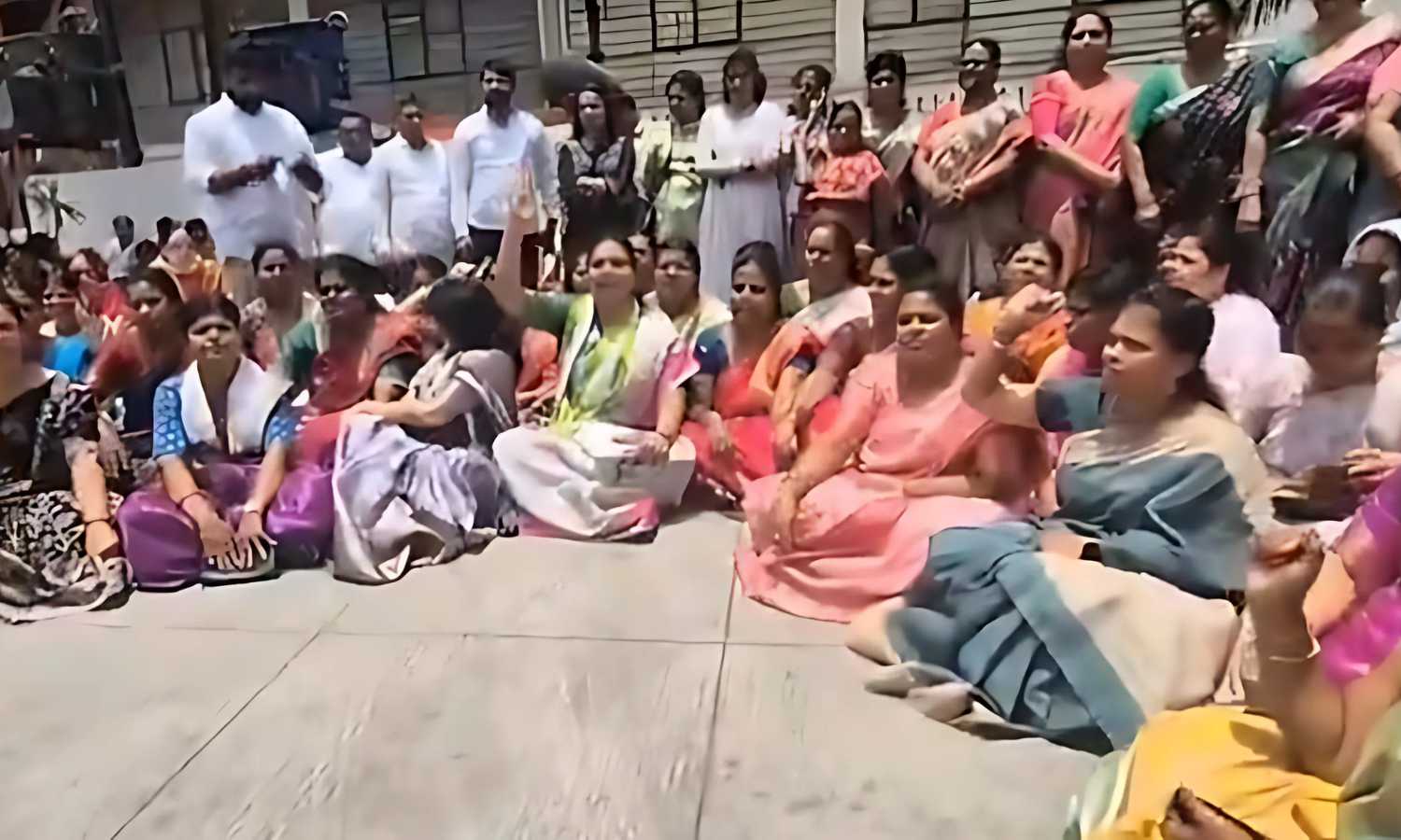Hyderabad: Telangana Jagruti women leaders staged a protest outside the Telangana Women’s Commission office on Monday, demanding immediate action against MLC Mallanna over his remarks against MLC Kavitha.