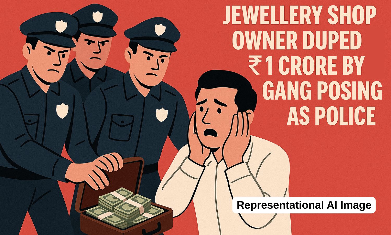 Six men arrived at the jeweller’s store dressed as police and offered gold at a rate lower than the prevailing market price. After some negotiation, the jeweller agreed to buy gold worth ₹1 crore. When he asked to see the gold, the gang showed him some jewellery, which he believed to be genuine.