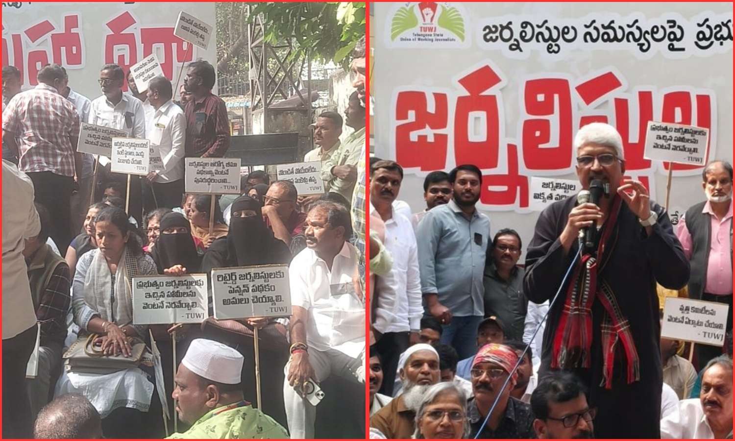 Prominent women journalists including Vimala, Attaluri Aruna, Vakati Manjula, and Kalyanam Rajeswari—voiced their support on the ground.