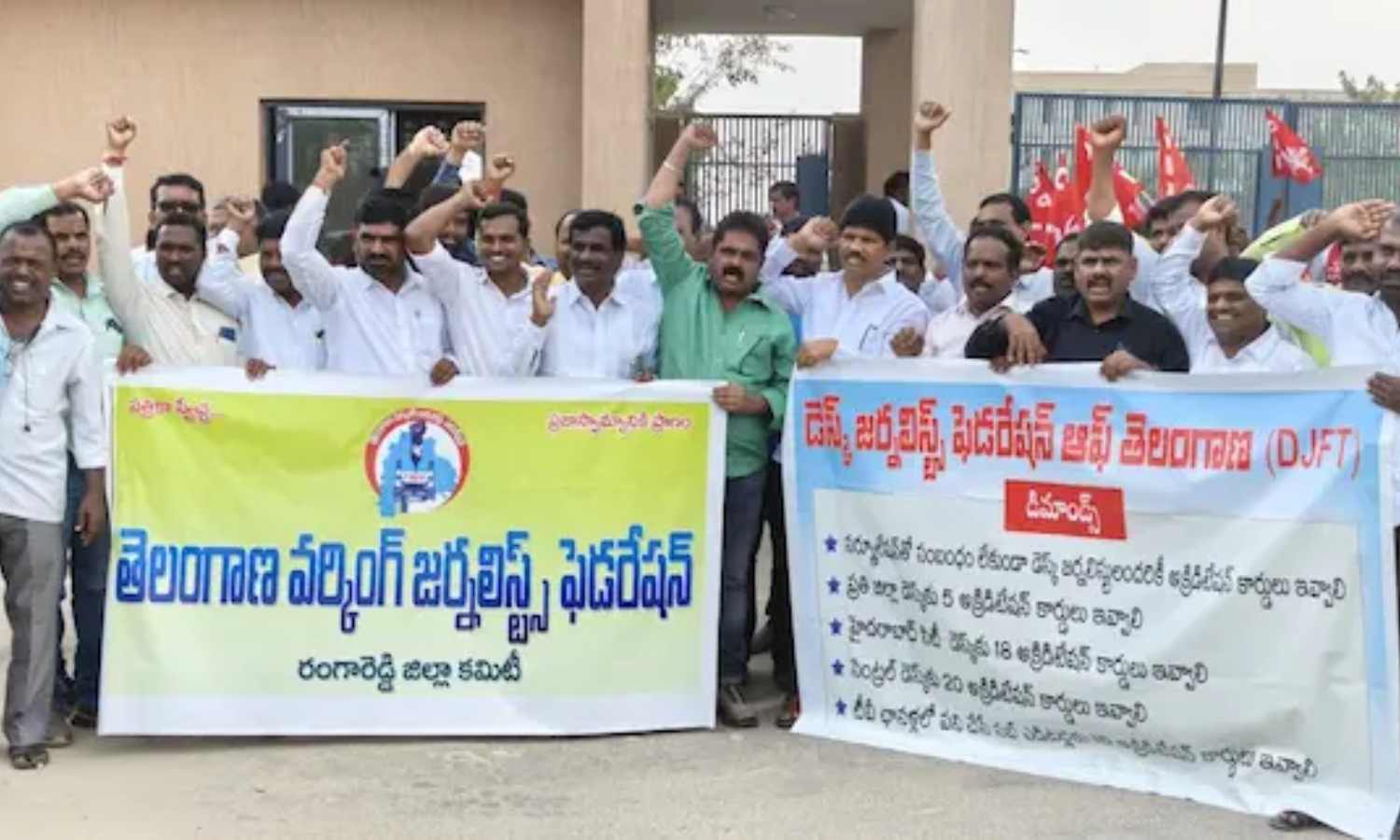 Hyderabad: Journalist associations staged an accreditation cards protest in the city, demanding that the state government increase the number of cards for desk journalists and issue them to all eligible media personnel.
