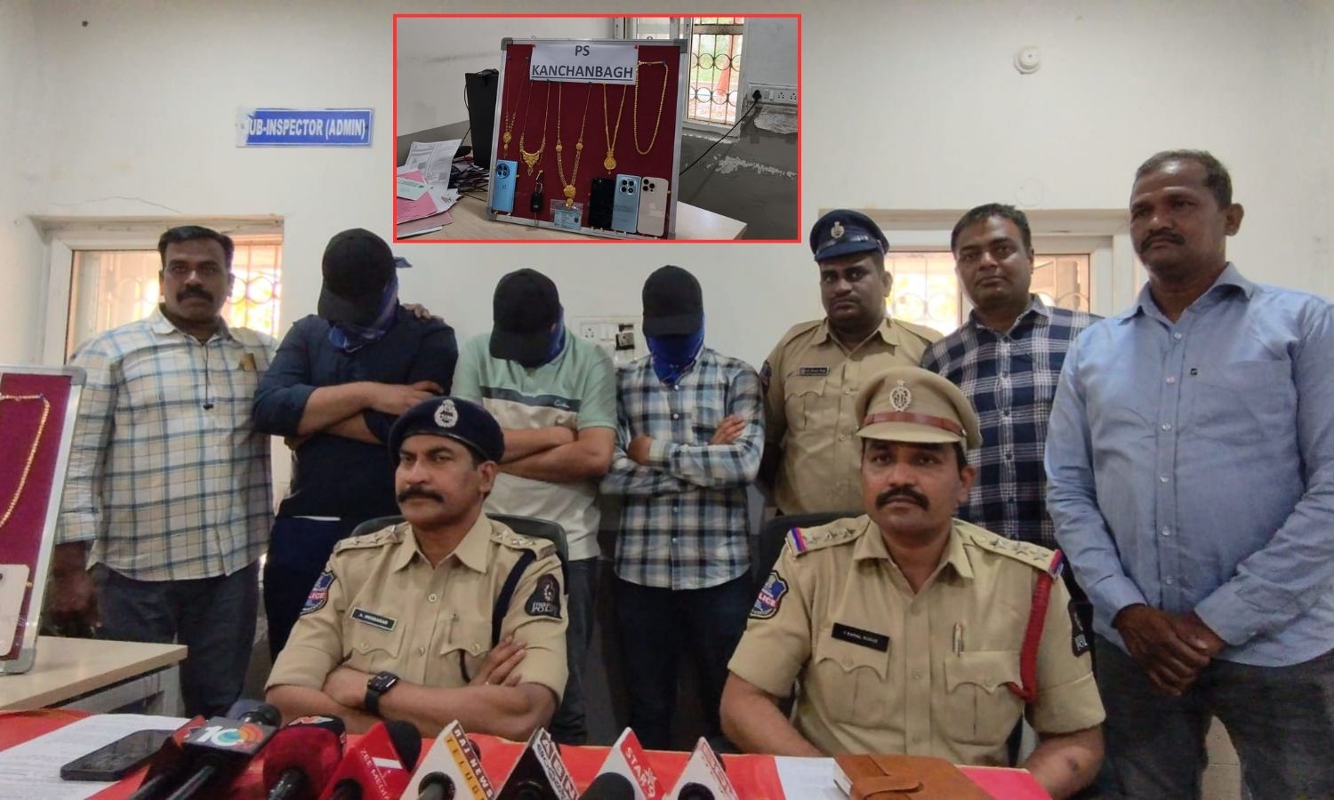 Hyderabad: Kanchanbagh Police arrested three persons, including the complainant’s son, in a gold theft case. Police recovered stolen ornaments during the operation.