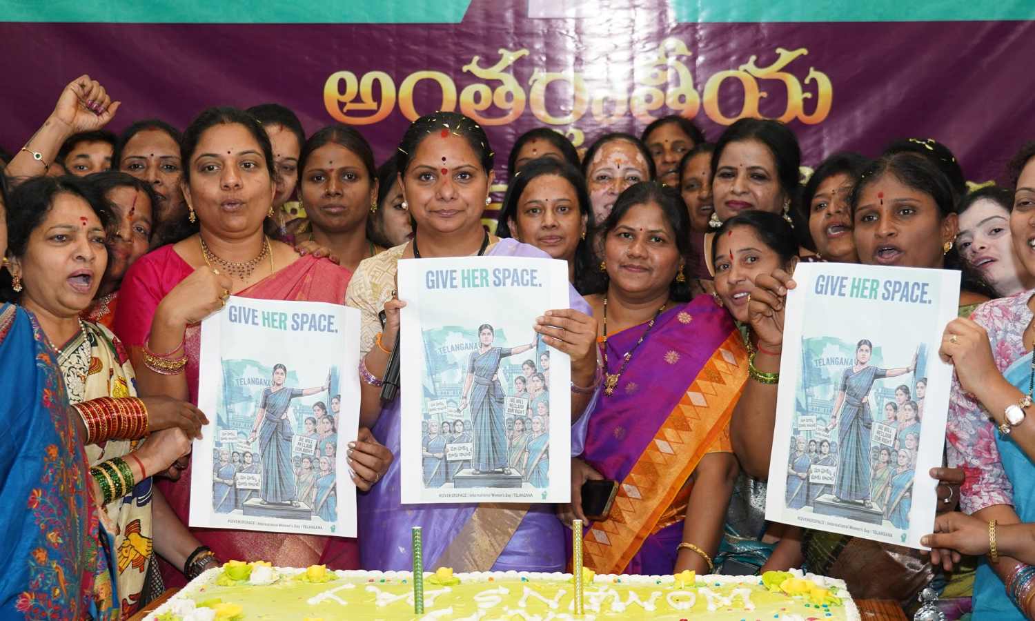 She made the remarks during International Women’s Day celebrations organised by Telangana Jagruthi at its central office in Banjara Hills. During the event, Kavitha cut a cake with women members and unveiled a poster for the “Give Her Space” campaign.