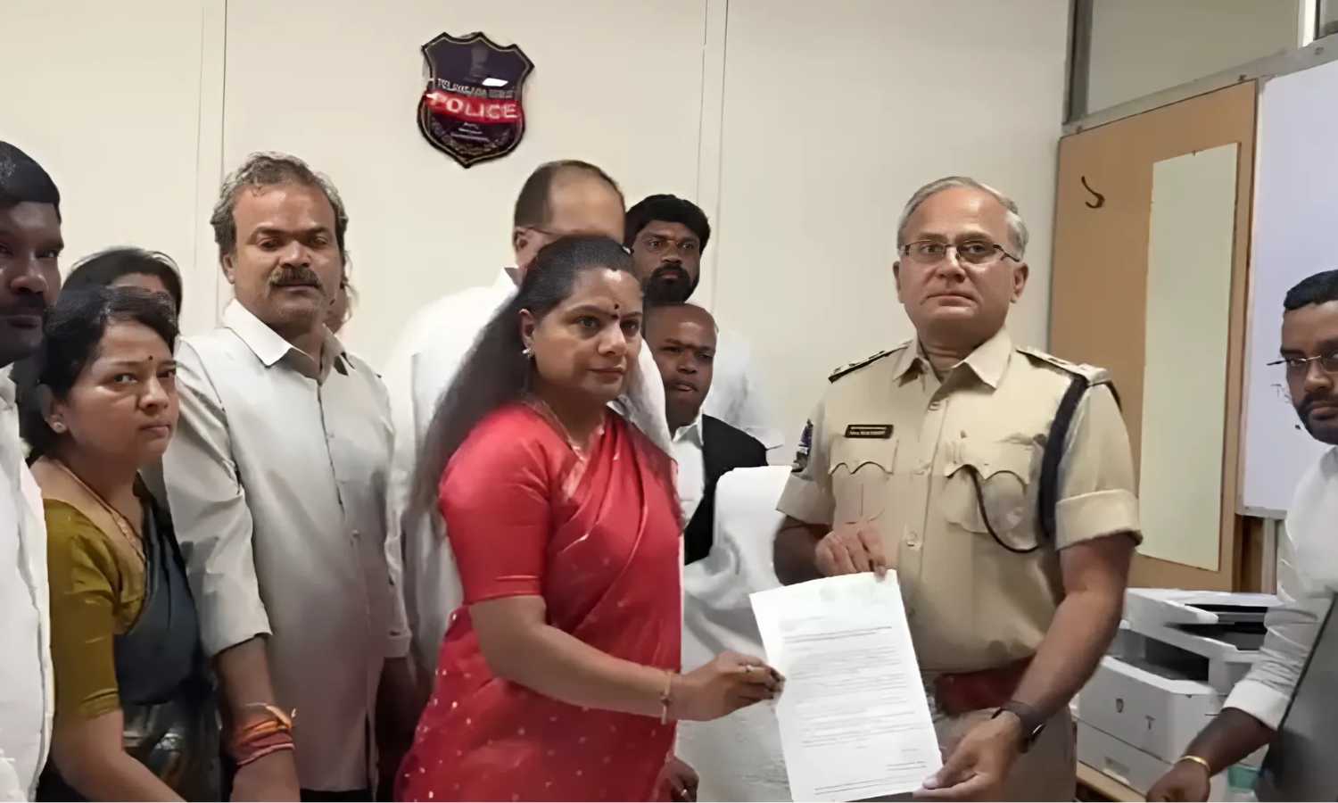 Kavitha handed the letter to Additional Inspector General (Law & Order) Ramana Kumar at the Telangana DGP office, urging immediate dismissal of Mallanna’s gunmen who allegedly opened fire during a protest outside the Q News office in Medchal.