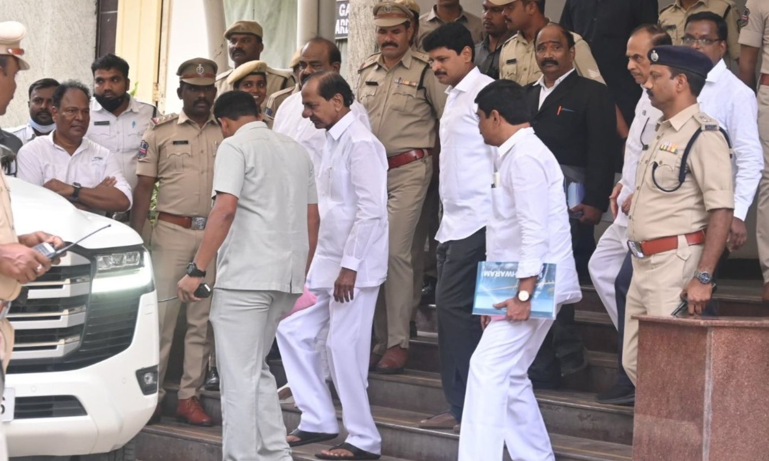 Hyderabad: BRS chief and former Telangana Chief Minister K. Chandrashekar Rao (KCR) wrapped up his high-stakes appearance before the Kaleshwaram Commission on Wednesday, after fielding questions for nearly 50 minutes from Commission Chairman Justice P.C. Ghose.