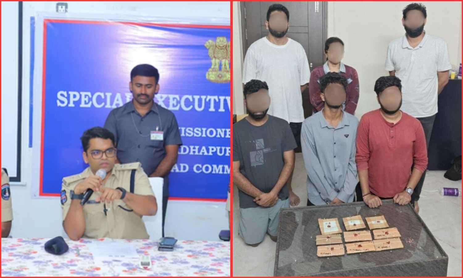Madhapur DCP Dr. G. Vineet told reporters on Monday that six people were arrested from the spot—Teja, Vikram, Neelima, wine shop owner Purushotham Reddy, software engineer Bhargav, and engineering student Chandan.