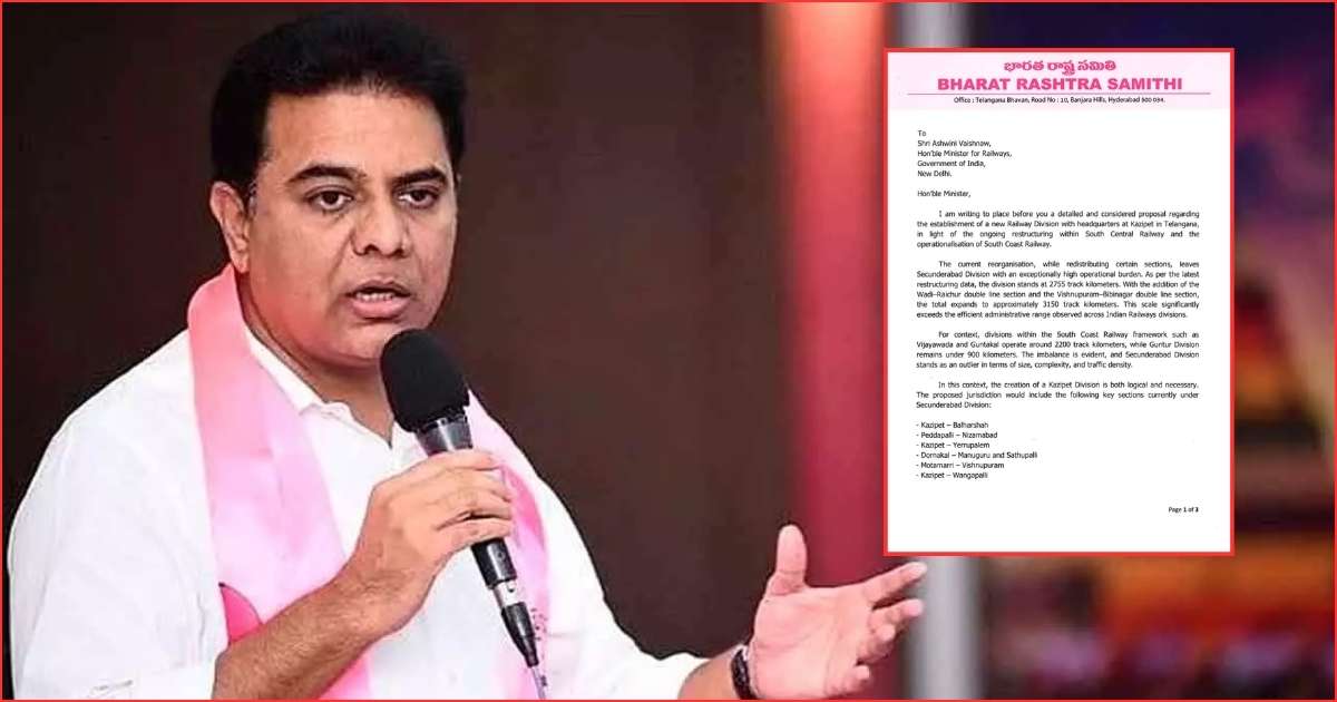 KTR said the Kazipet railway division demand was both logical and necessary to address the imbalance. He proposed that the new division include sections such as Kazipet–Balharshah, Peddapalli–Nizamabad, Kazipet–Yerrupalem, Dornakal–Manuguru and Sathupalli, Motumari–Vishnupuram, and Kazipet–Wangapalli.