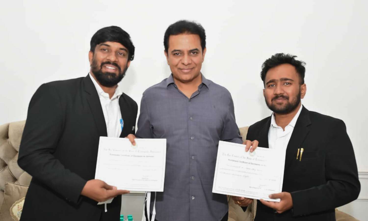 Hyderabad: Bharat Rashtra Samithi (BRS) working president K.T. Rama Rao met two young men who overcame financial hardship to become lawyers, hailing their journey as a symbol of perseverance and hope.
