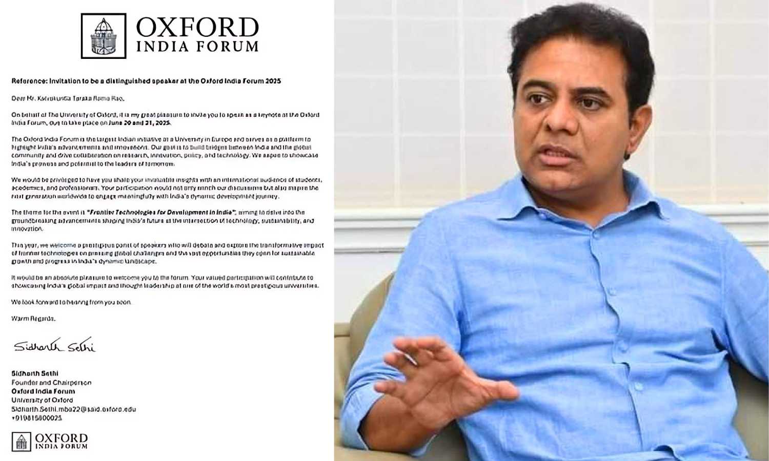 Hyderabad: BRS working president K.T. Rama Rao left for the United Kingdom to participate in the Oxford India Forum 2025, scheduled to be held at Oxford University on June 20 and 21.