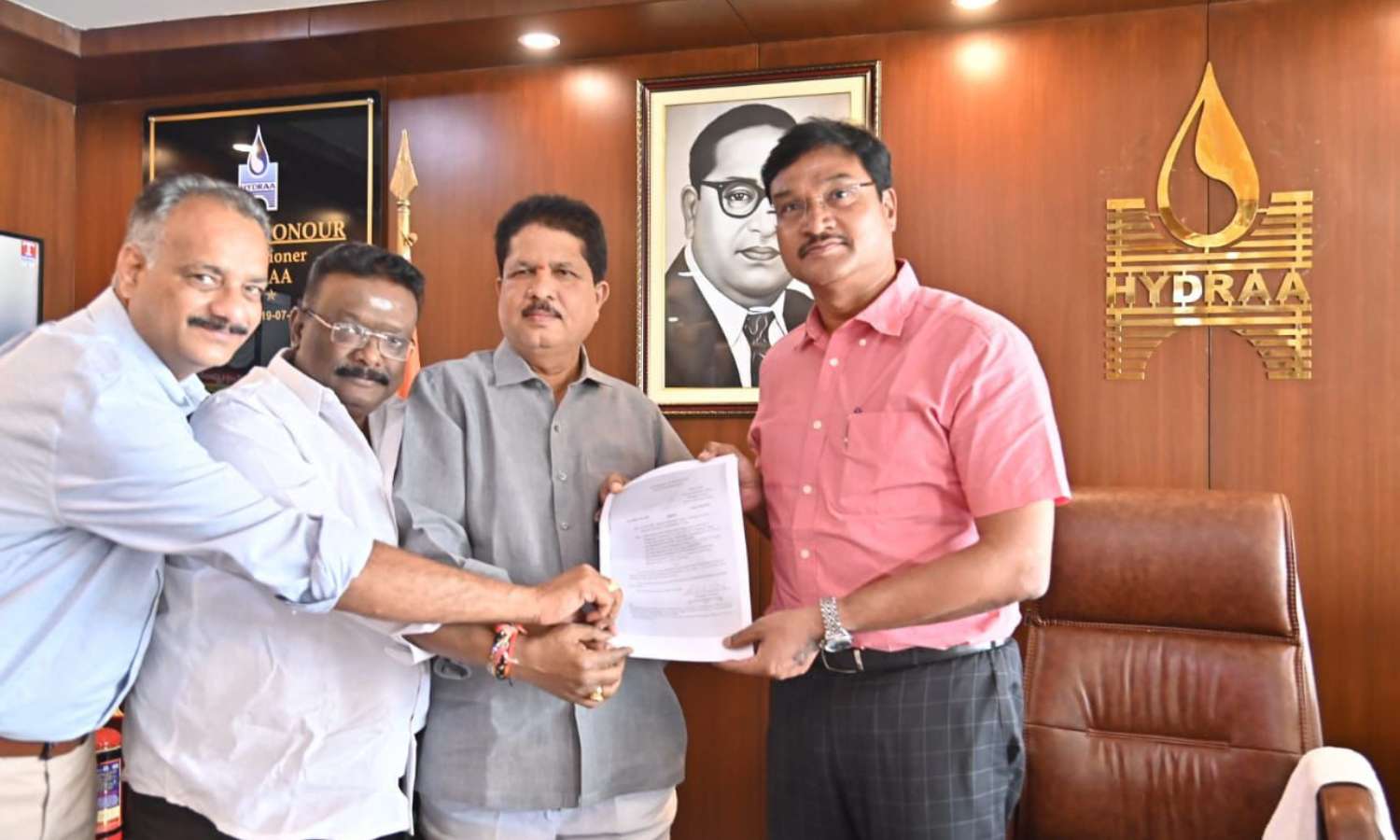 Hyderabad: Kukatpally MLA Krishna Rao led a delegation to the HYDRAA Commissioner on Wednesday, raising objections over the alleged illegal occupation of valuable government land in Gajularamaram village.
