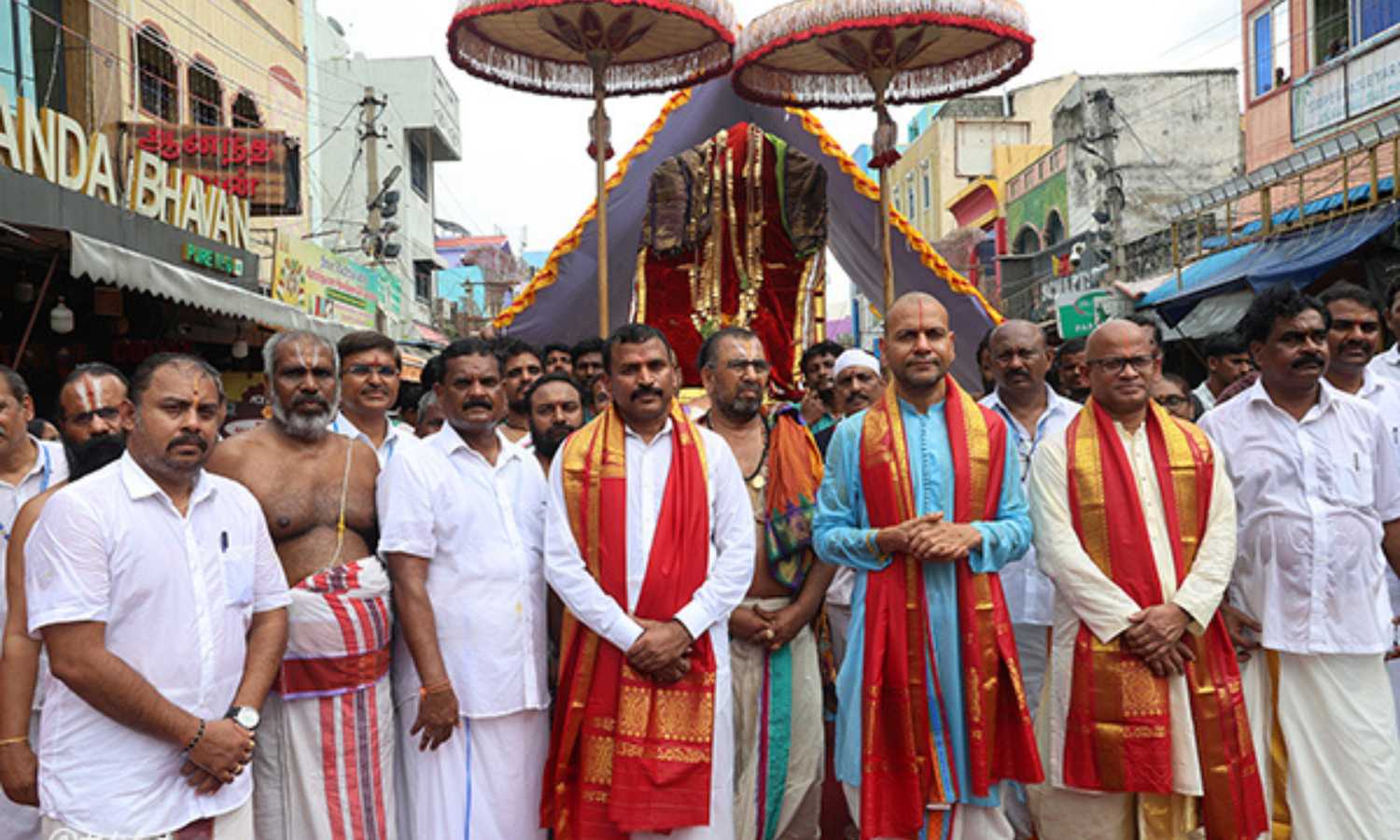 Additional Executive Officer Ch. Venkaiah Chowdary carried the sacred Lakshmi Kasula Haram from the Tirumala Srivari Temple to Shilparamam–Pasupumandapam. Priests conducted special prayers at the venue. After the rituals, the team led a ceremonial procession through the Mada streets, accompanied by traditional instruments, bhajans and kolatas.