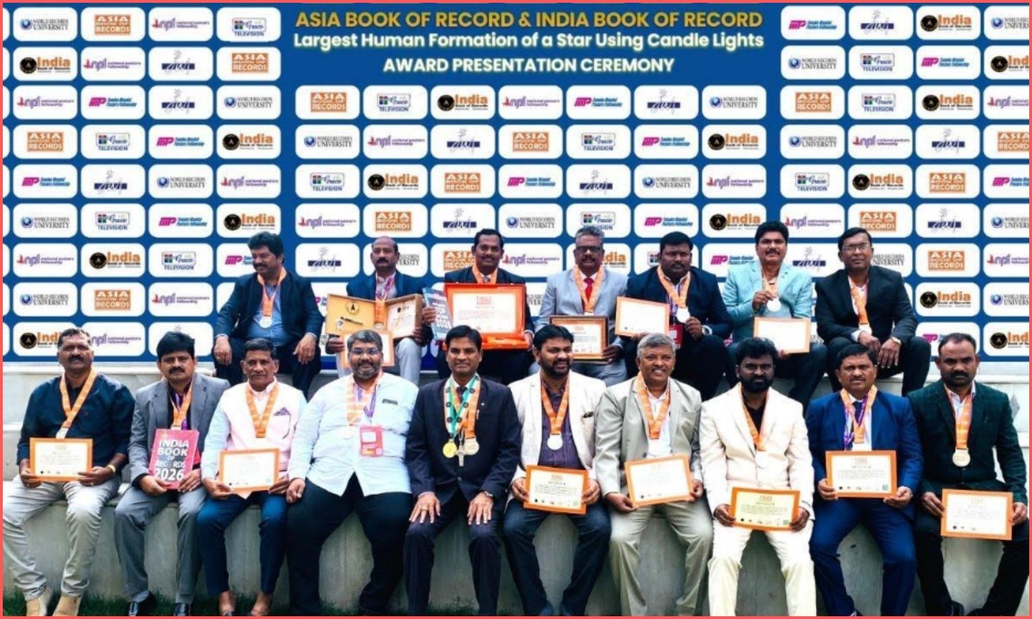 Hyderabad: Asia Book of Records and India Book of Records conferred their awards on the organising team that successfully created the largest human formation of a star using candles at Tanuku in West Godavari district of Andhra Pradesh on December 15, 2025.