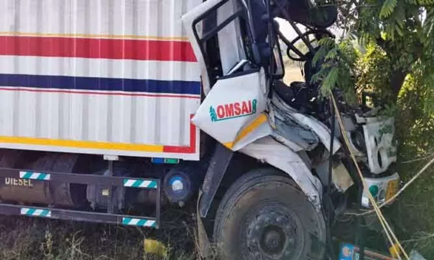 According to locals, the tanker was watering trees on the roadside when the speeding lorry, heading from Hyderabad towards Karimnagar, rammed into it. The impact forced the lorry off the road and into a tree, trapping the driver inside the cabin.