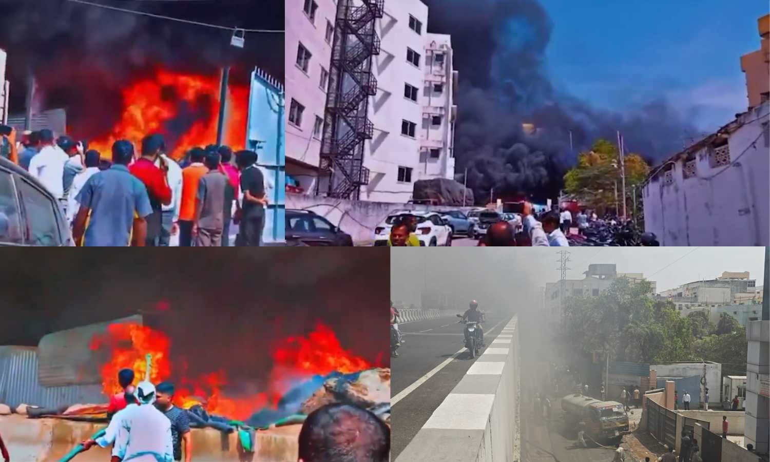 HYDERABAD: A massive fire broke out near the Amberpet Flyover on Tuesday morning, triggering panic among locals and commuters. The incident occurred at the Chaderghat Number Chowrasta, where sheds set up for flyover construction suddenly caught fire. Flames spread rapidly, and thick black smoke engulfed the area, leading to major traffic congestion.