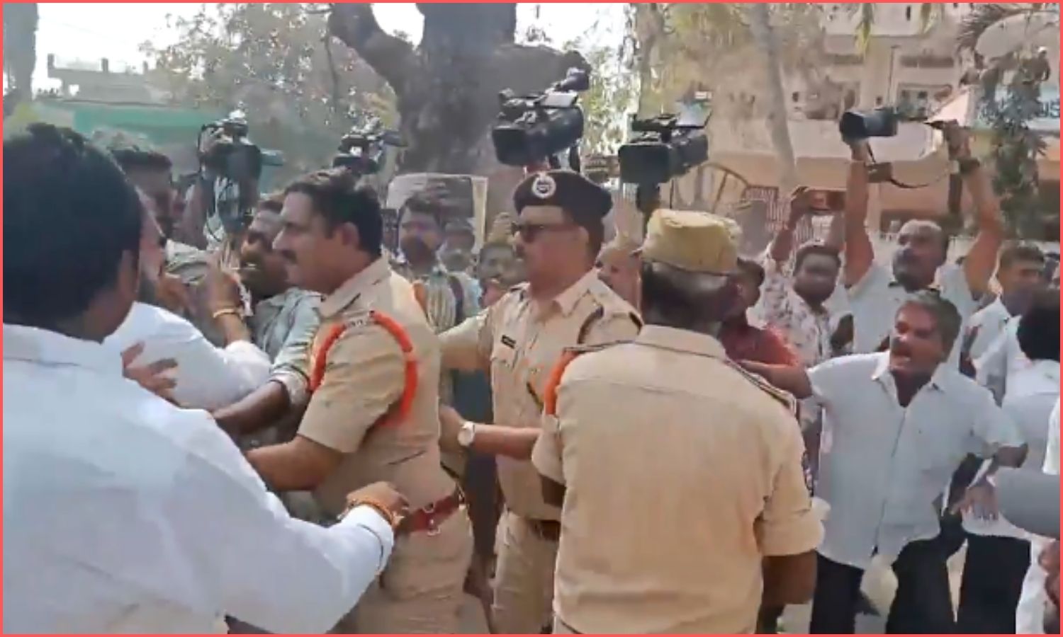 In Mahabubabad district’s Torur, tension escalated as BRS and Congress cadres raised slogans against each other. The situation soon turned into a scuffle. MP Kadiyam Kavya, MLA Yashaswini Reddy and former minister Errabelli Dayakar Rao reached the venue. During the commotion, Congress workers allegedly attacked the personal assistant of Errabelli.