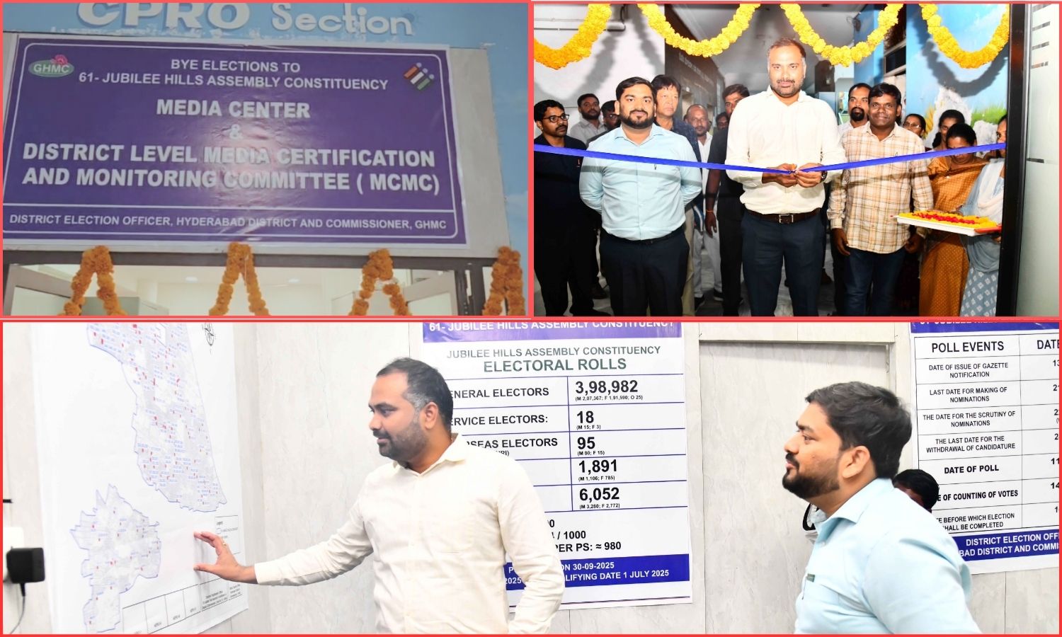 The MCMC will function under the chairmanship of GHMC Commissioner R.V. Karnan. GHMC PRO Mamindla Dasharatham will act as Member Secretary. The committee also includes Secunderabad RDO and Jubilee Hills Returning Officer P. Sai Ram, GHMC Deputy Engineer (IT and Social Media) Narsing Rao, Hyderabad PIB Deputy Director Manasa Krishna Kanth, and Indian Express Principal Correspondent Bachanjeet Singh.