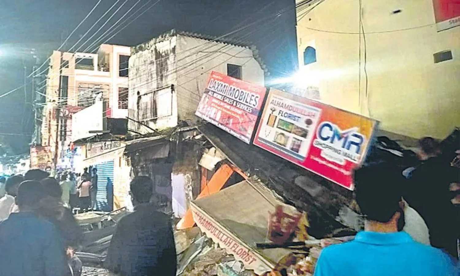 Hyderabad: A gas cylinder blast in Medchal town on Monday night left one man dead and three others injured after a building collapsed, crushing three shops near the market road junction.