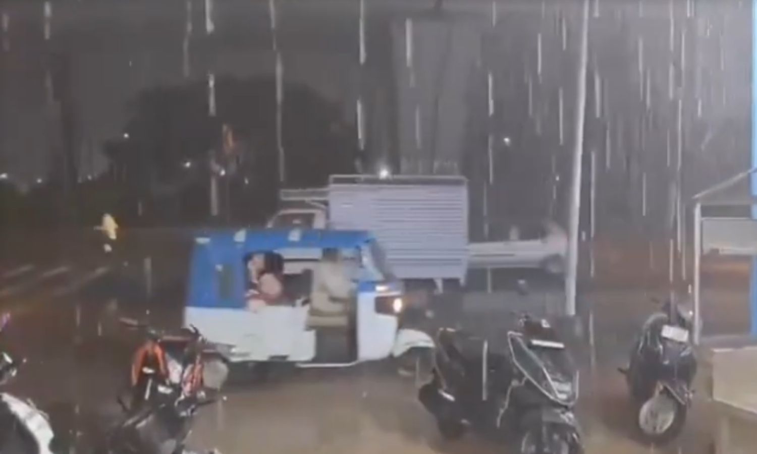 Adilabad district witnessed dense cloud cover followed by intense showers during late night hours. In addition, gusty winds accompanied the rain in many areas, leading to cooler conditions.