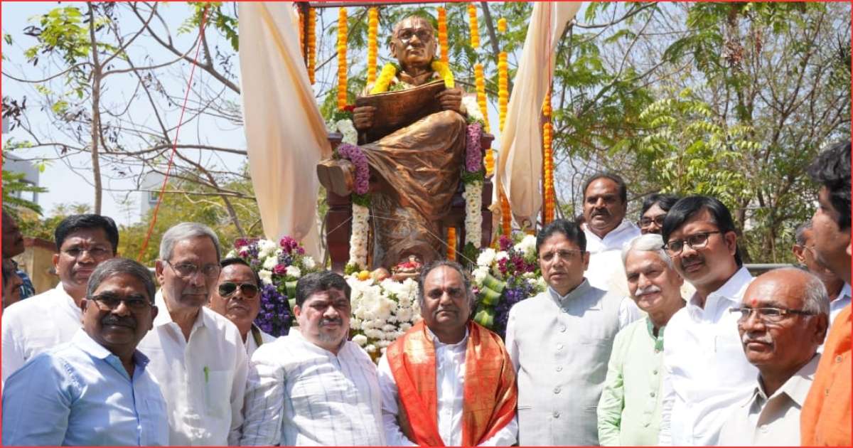 Hyderabad: Ministers Duddilla Sridhar Babu and Ponnam Prabhakar unveiled the MS Acharya statue at the Journalists Colony in Gopanpally, Hyderabad.