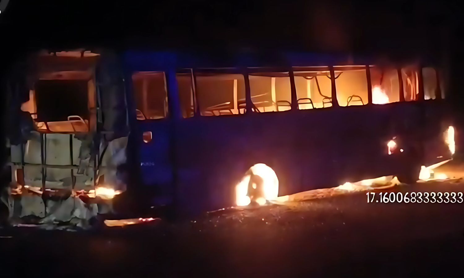 The incident occurred in the early hours when the vehicle was passing through the area. According to eyewitnesses, one of the bus tyres suddenly burst, sparking a fire that quickly spread through the vehicle.