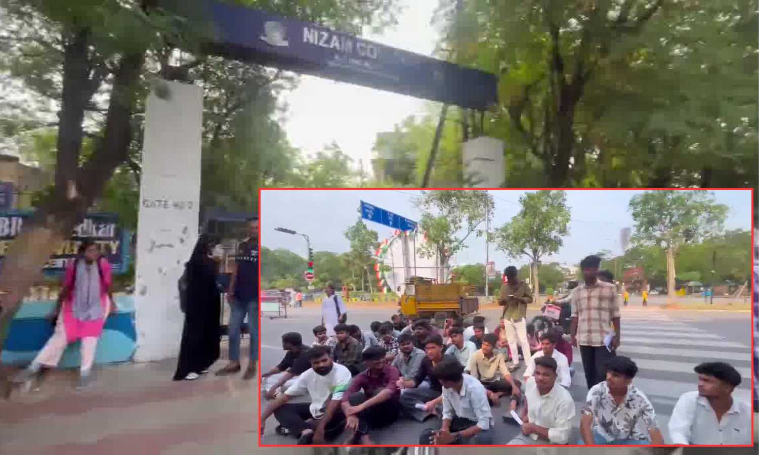 Hyderabad: Chaos broke out outside Nizam College in Basheerbagh Friday morning as dozens of students sat down in protest, blocking the main road. The reason: they weren’t allowed inside the college premises before 9 a.m. to appear for their semester exams.