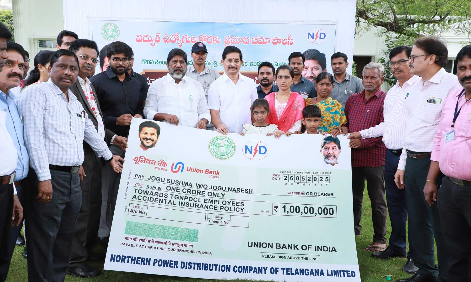 Deputy Chief Minister Bhatti Vikramarka Mallu presented the cheque at a sombre gathering in Praja Bhavan, honouring the late Jogun Naresh, who died on duty while working for the Northern Power Distribution Company Limited (NPDCL). Alongside the compensation, Naresh’s wife Ramesh Shrimati received a job appointment in the electricity department under compassionate grounds.