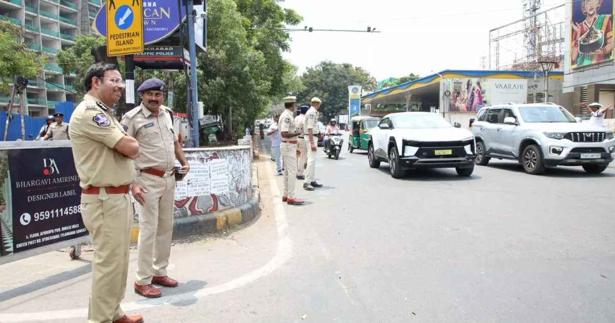 The KBR Park traffic trial covered major stretches from the park’s main gate to Basavatarakam Hospital, Agrasen Junction, Film Nagar, and Road No. 45 up to Jubilee Hills Check Post. The Commissioner inspected the route along with D. Joel Davis and other senior officers to assess traffic flow.