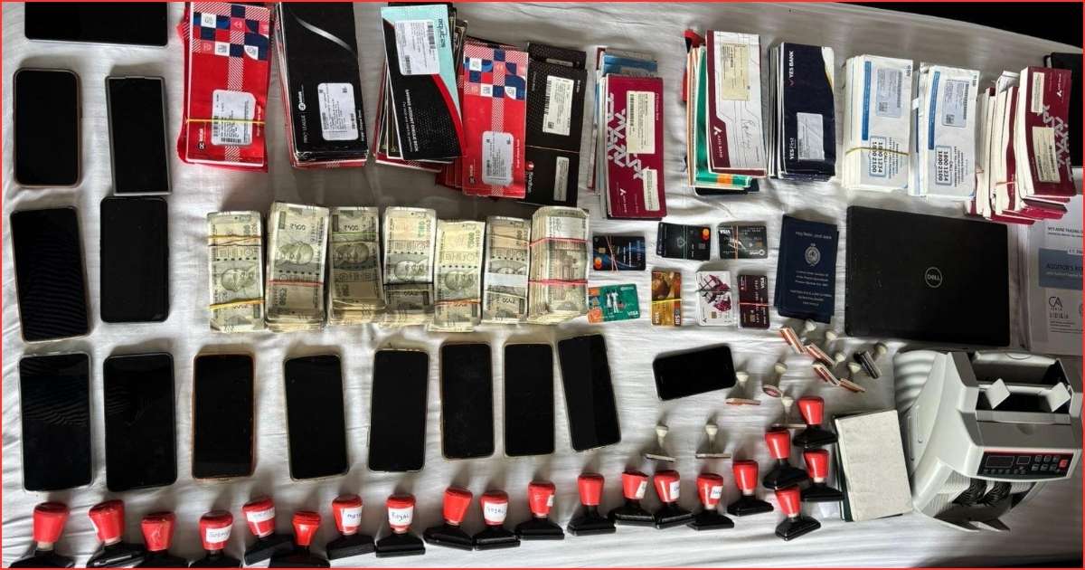 During the raids, police seized 204 mobile phones and 141 SIM cards. They also recovered 152 bank passbooks, 234 debit and credit cards, and 26 laptops. In addition, teams confiscated 56 corporate stamps and Rs 36 lakh in cash.