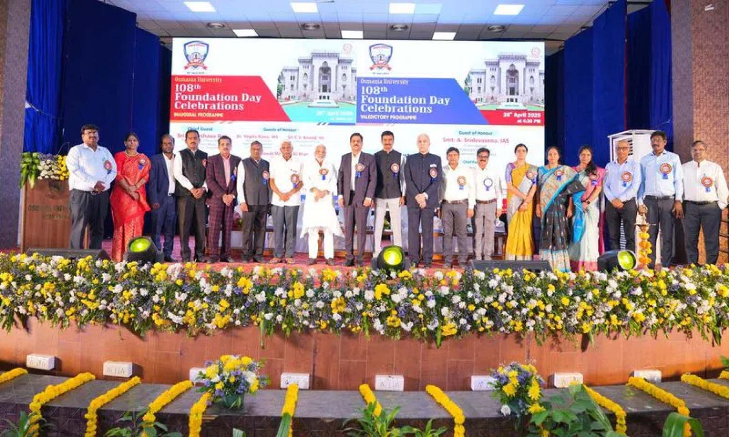 HYDERABAD: Osmania University celebrated its 108th foundation day with grandeur at the Tagore Auditorium on Saturday. The event commenced with a two-minute silence to honour the victims of the recent terrorist attack in Pahalgam, Jammu and Kashmir.