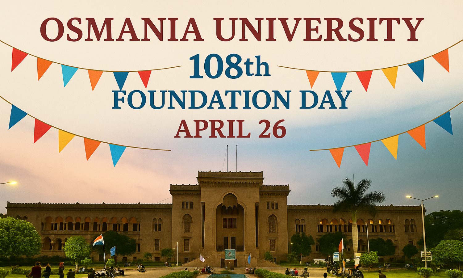HYDERABAD: The prestigious Osmania University in Hyderabad is all set to celebrate its 108th Foundation Day on April 26. The celebrations will feature K. Keshav Rao, Advisor to the Chief Minister on Public Affairs and an alumnus of the university, and Hyderabad Police Commissioner CV Anand as chief guests.