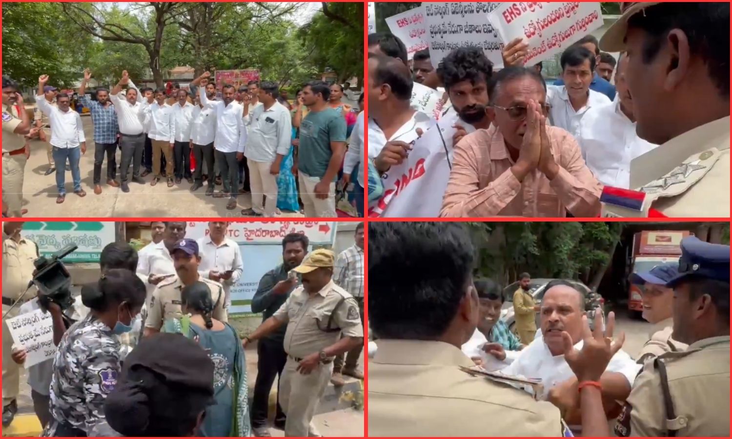 Hyderabad: Outsourcing employees of the Medical, Health and Family Welfare Department staged a protest at the Hyderabad Urban Primary Health Centre on Tuesday, demanding immediate release of five months’ pending salaries. Police detained the protesters during the demonstration.