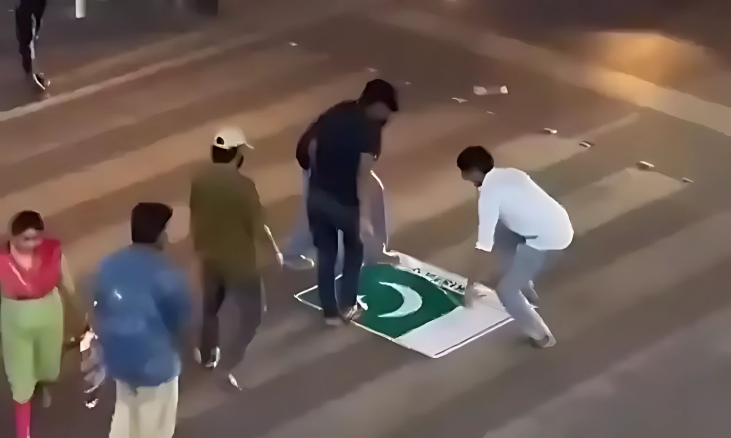 In a spontaneous act, residents laid out a Pakistan flag across the middle of the road near the busy metro junction. Passers-by including children were seen deliberately walking over the flag, some stomping on it as an expression of anger. The event quickly drew attention from onlookers and commuters in the area.