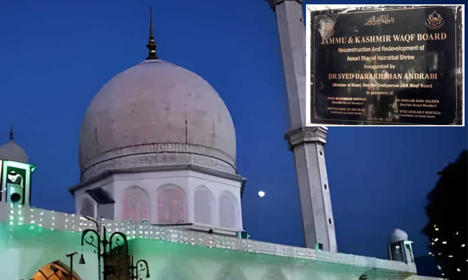 The Hazratbal Dargah, regarded as the holiest shrine for Muslims in Jammu and Kashmir, houses relics of the Prophet Muhammad (PBUH). Earlier this week, the Waqf Board unveiled a renovation project worth crores and placed the national emblem on the plaque.