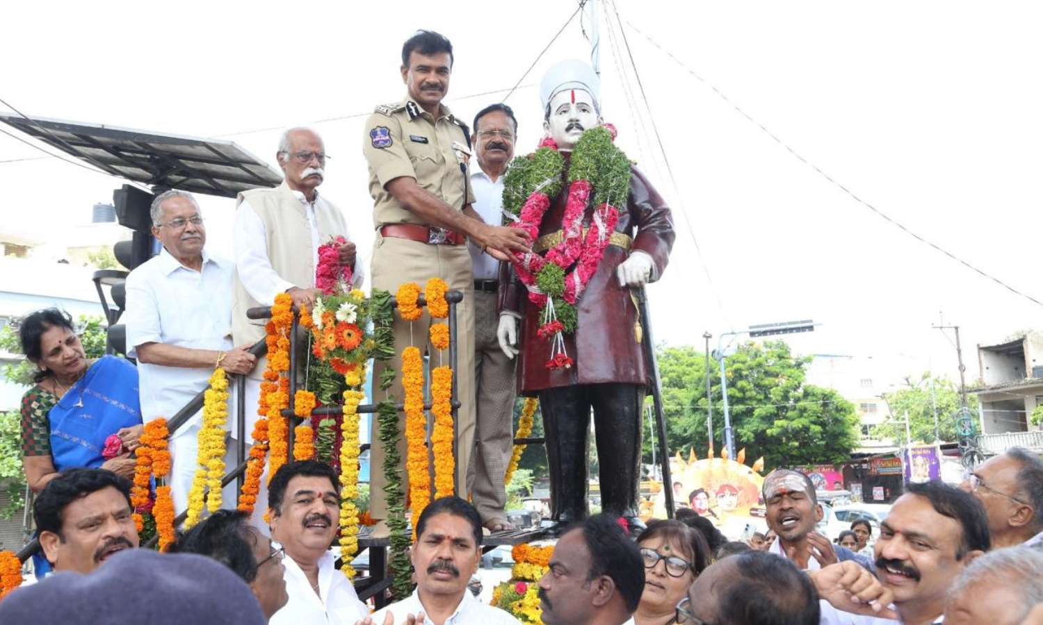 Hyderabad: The Raja Bahadur Venkatram Reddy Educational Society on Friday marked the 156th birth anniversary of Raja Bahadur Venkatram Reddy at YMCA X-Road, Narayanaguda. Hyderabad Police Commissioner C.V. Anand, IPS, attended as chief guest and paid floral tributes by garlanding the statue of the former Kotwal.