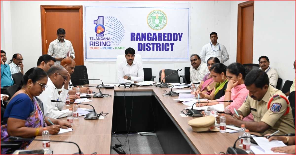 After a video conference, the Collector convened a coordination meeting at the Integrated District Offices Complex. RDOs, MPDOs, police, electricity, education and other departmental officials attended. He instructed them to coordinate closely and establish a robust administrative system for the Ranga Reddy Inter exams.