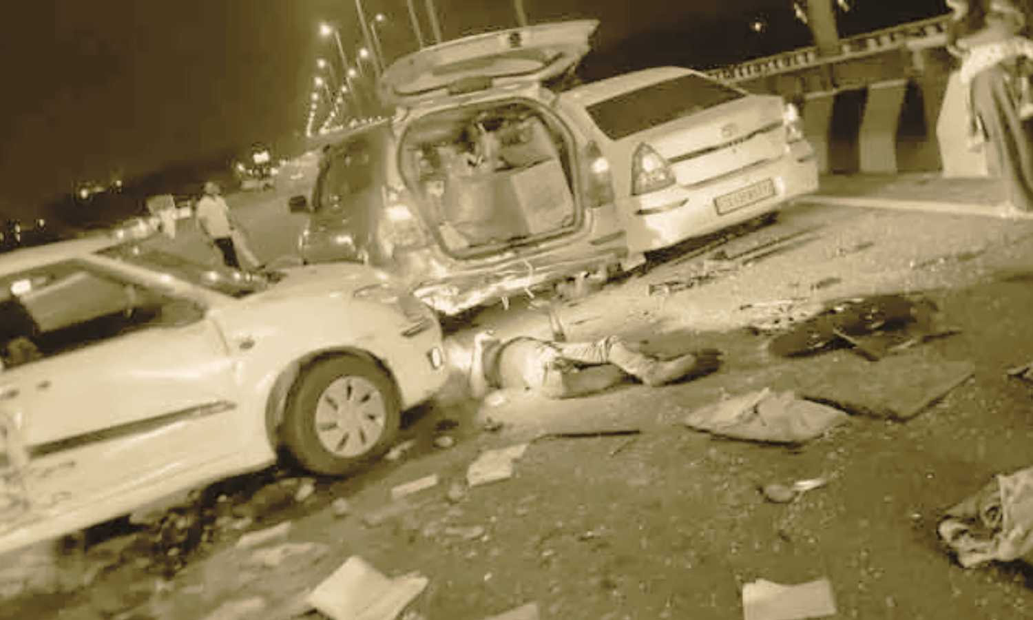 The force of the collision caused extensive damage to three vehicles. Police suspect overspeeding as the primary cause of the crash.