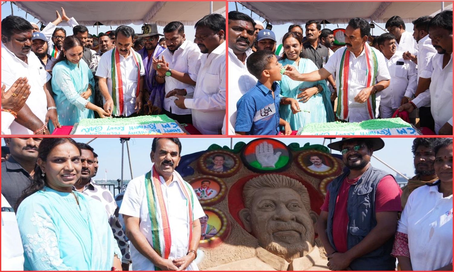 As part of the celebrations, renowned sand artist Varaprasad created a sand sculpture of Chief Minister Revanth Reddy on the Hussain Sagar lakefront. Minister Jupally visited the site and congratulated the artist for his creative work.