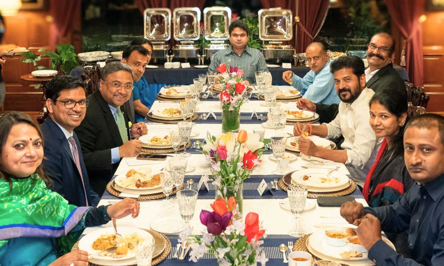 The 100-year-old India House served as the setting for an evening of strategic discussions focused on economic partnerships and collaboration. Joining the discussions were DMK MP Kanimozhi Karunanidhi, Congress MP K Raghuveer Reddy, and former Union Minister and MP Napoleon, along with senior officials.