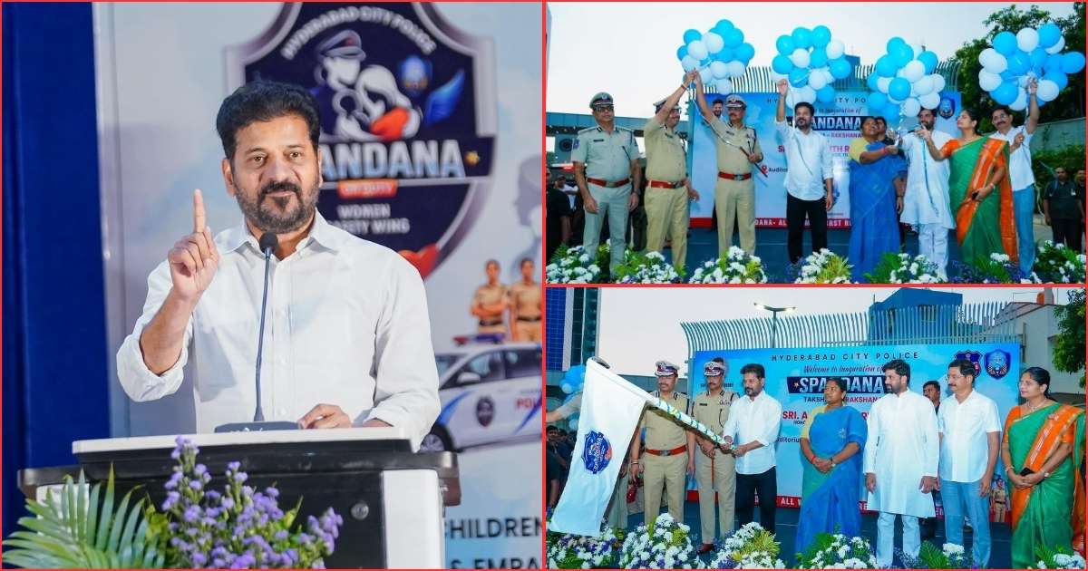 Revanth Reddy said Telangana will emerge as a model state for women’s safety. He also released the Spandana poster on the occasion.