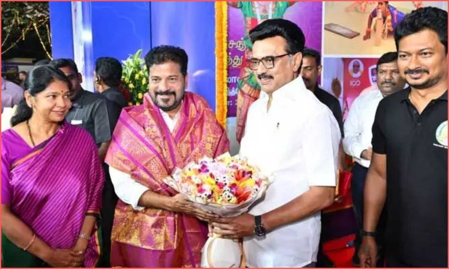Revanth said Tamil Nadu was the land of leaders such as Annadurai, Karunanidhi, and Kamaraj, who transformed the education sector. He recalled how Indira Gandhi introduced the Kamaraj Plan nationally. He also noted that Tamil Nadu’s midday meal scheme became a model for the country.