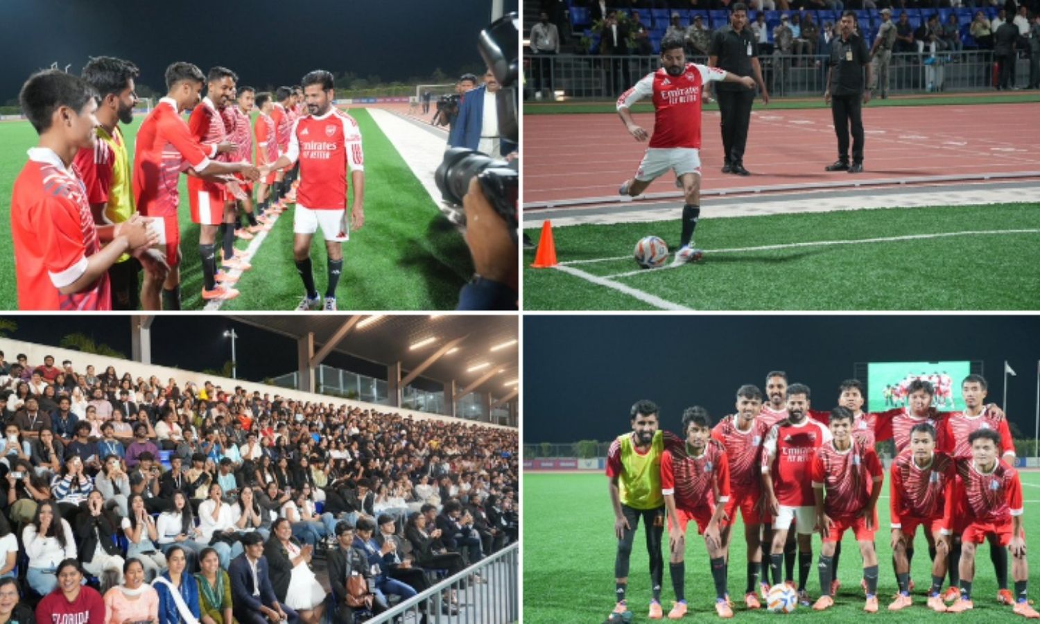 He toured the university with Health Minister Damodar Raja Narasimha and viewed several student stalls before entering the field. Students cheered when he struck the ball or sent a pass forward during the friendly match with the Woxsen Sharks. Earlier, Chancellor Praveen K Pula honoured him. Revanth Reddy urged young people to excel in both studies and sports to build stronger futures.