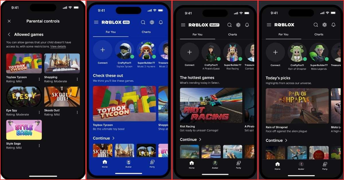 Users aged 9 to 15 will receive Roblox Select accounts. These accounts will allow access to games rated up to Moderate, while communication settings will remain unchanged for this age group.