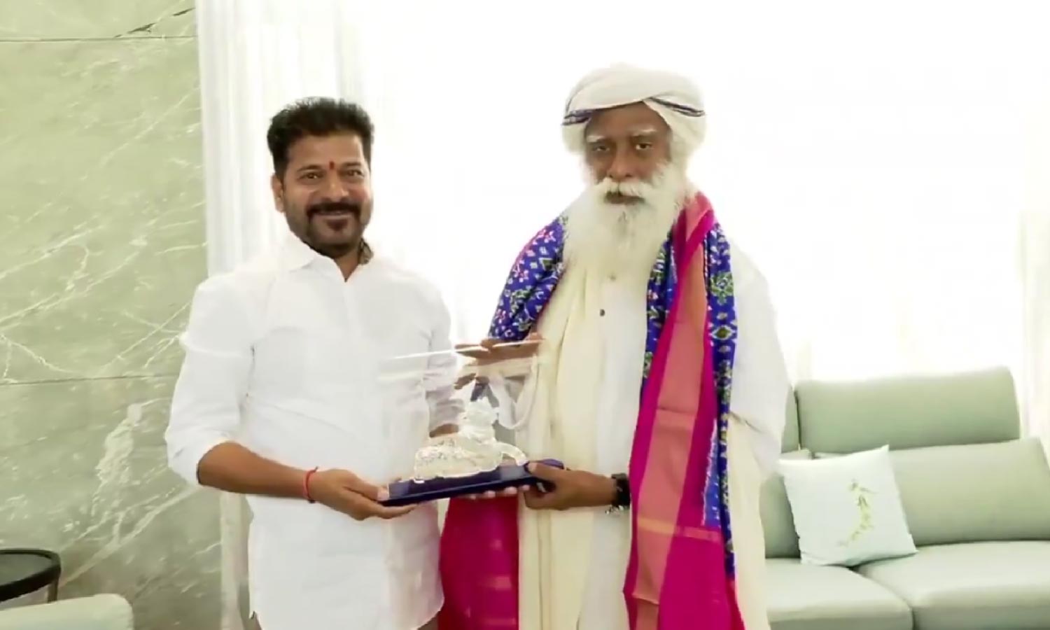 Sadhguru Jaggi Vasudev meets CM Revanth Reddy at his residence