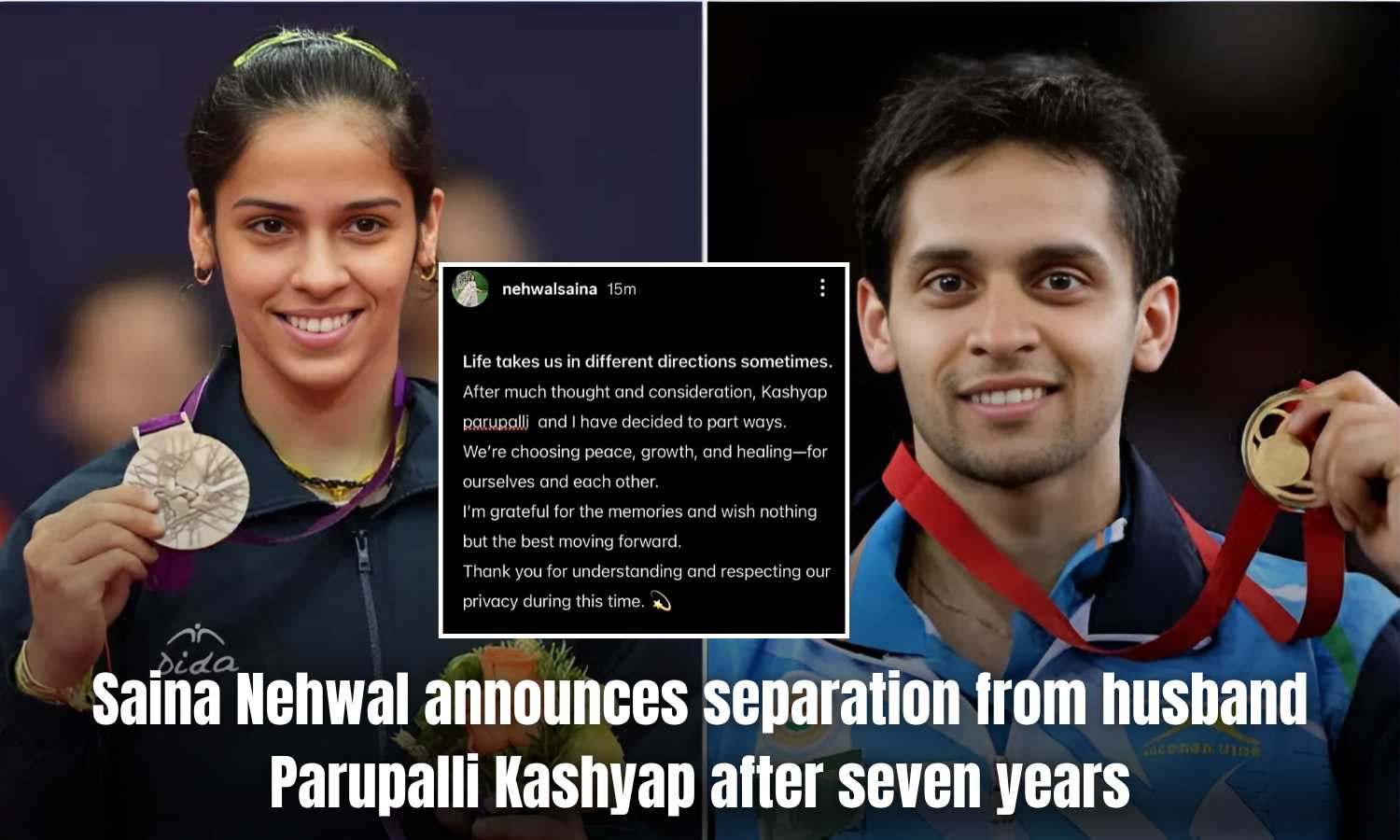 Hyderabad: Olympic medallist Saina Nehwal announced her separation from fellow badminton player Parupalli Kashyap, bringing an end to their nearly seven-year marriage.