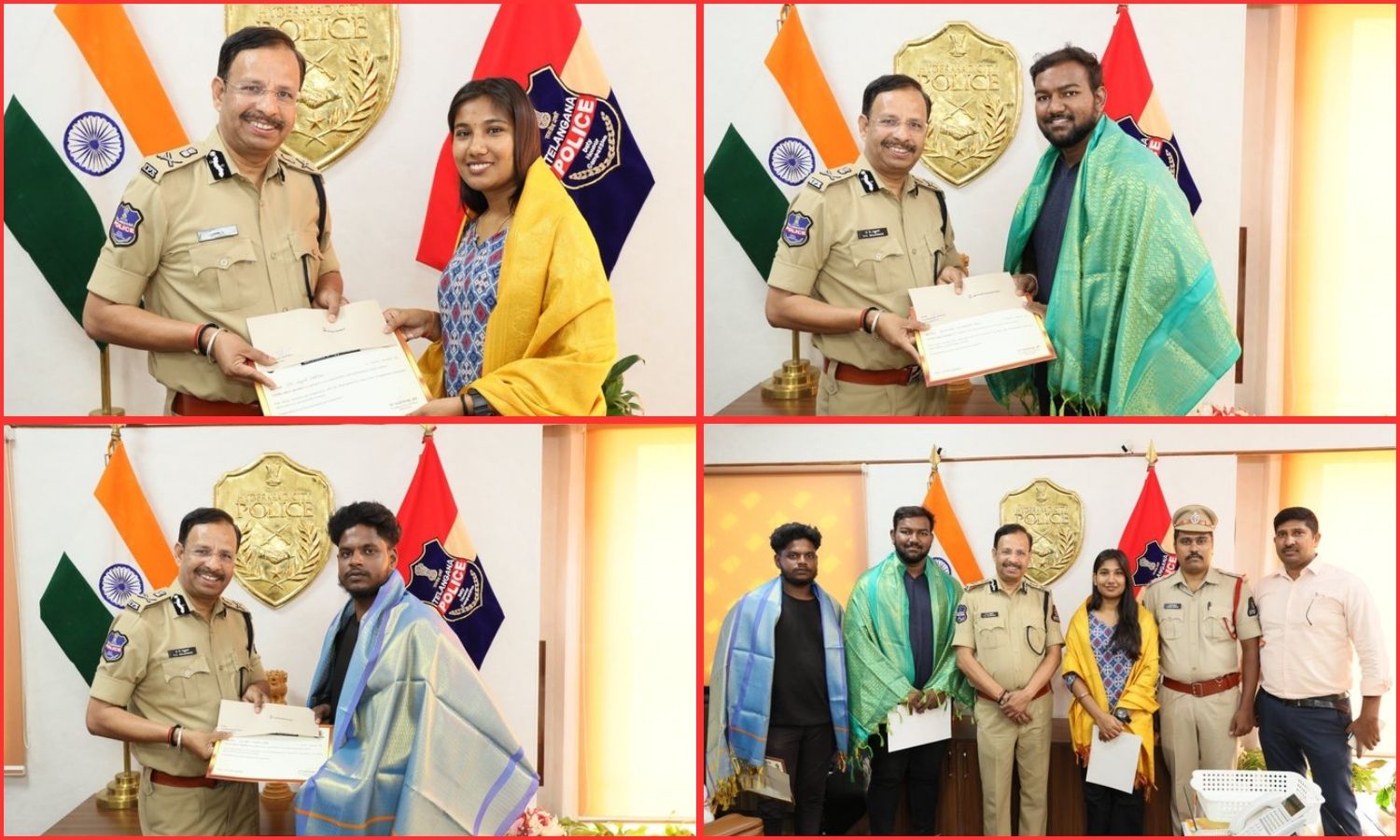 He felicitated Sejal, Ganapathi and Kashinath at the old Commissionerate office in Basheerbagh. He awarded them certificates and cash rewards for their prompt action.