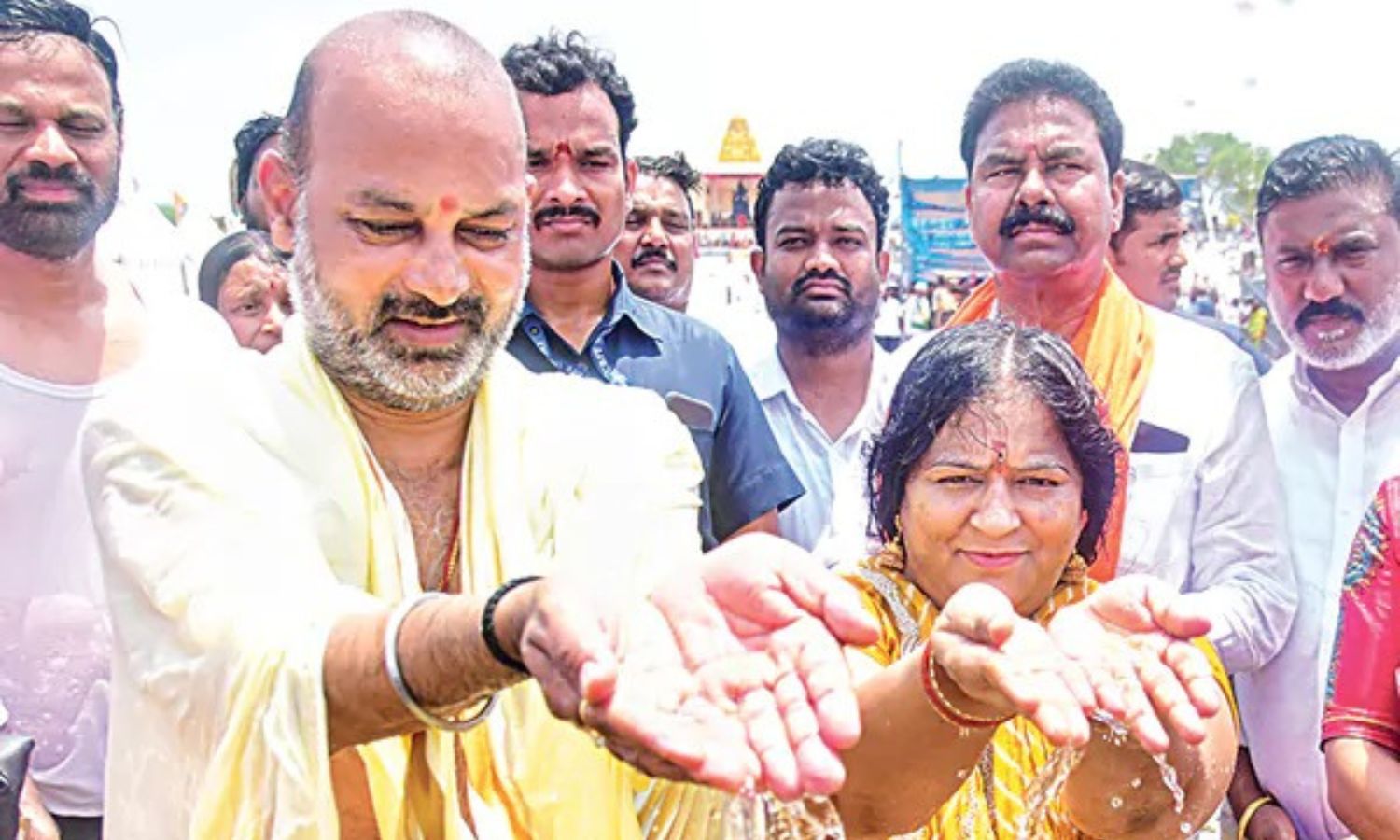 Union Minister of State for Home Affairs Bandi Sanjay Kumar, government whip and Dornakal MLA Dr Ramachandra Nayak, Wyra MLA Ramdas Nayak, Medchal MLA Mallareddy, and High Court Justice Nandikonda Nursing Rao also performed the Pushkara snanam and participated in Abhisheka pujas at the temple.